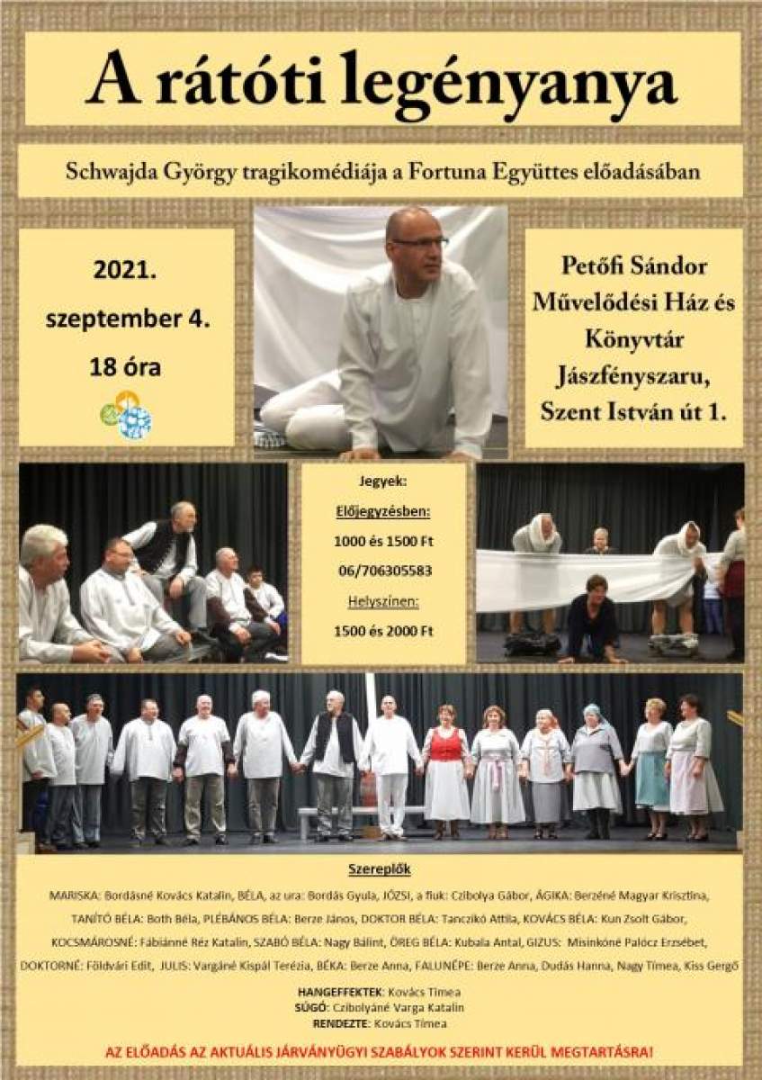 A jászfényszarui Fortuna Együttes előadásban láthatták az est nézői Schwajda György tragikomédiáját a Rátóti legényanyát.